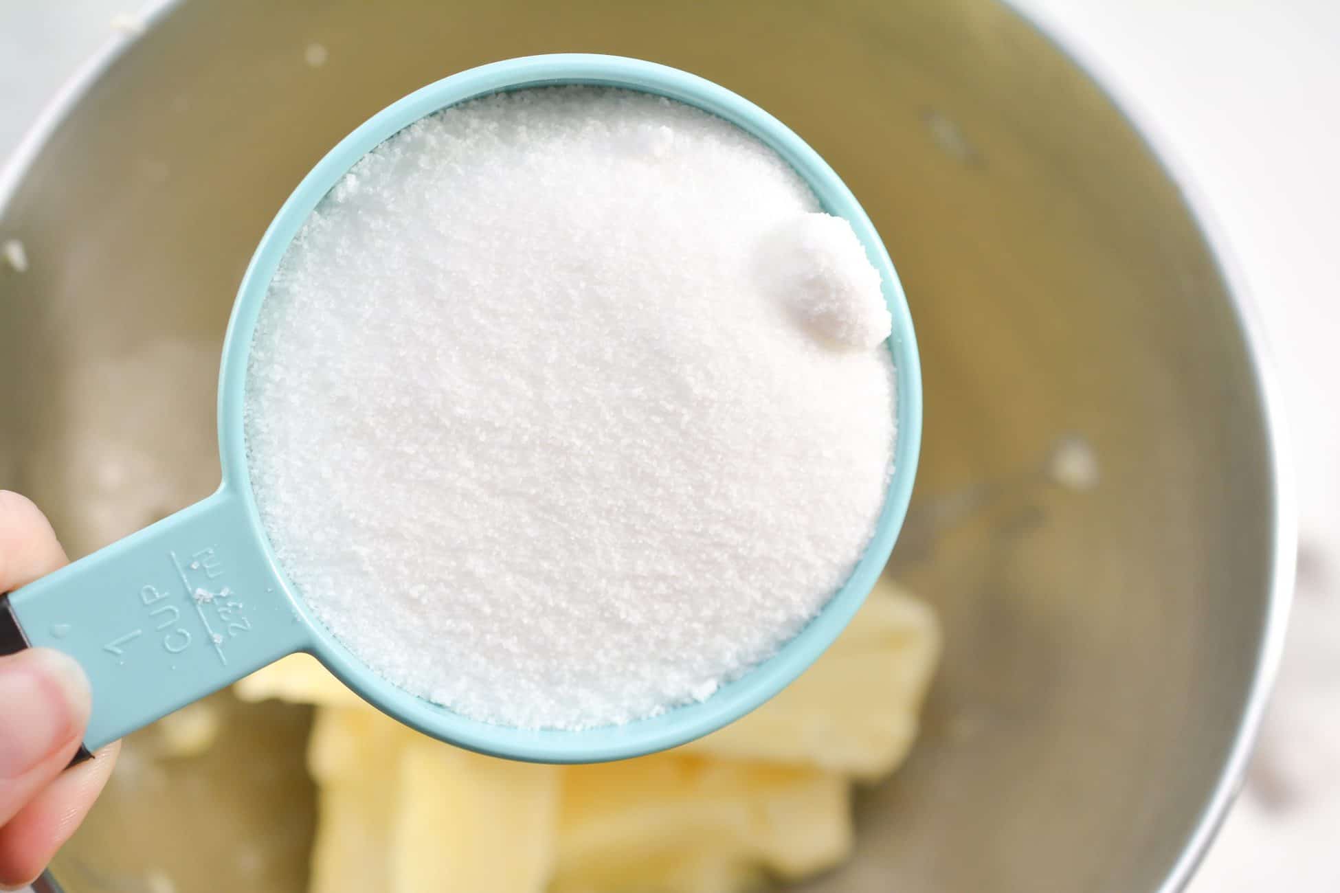 • Add the butter, granulated sugar, and brown sugar to a mixing bowl and beat until fluffy and creamy.