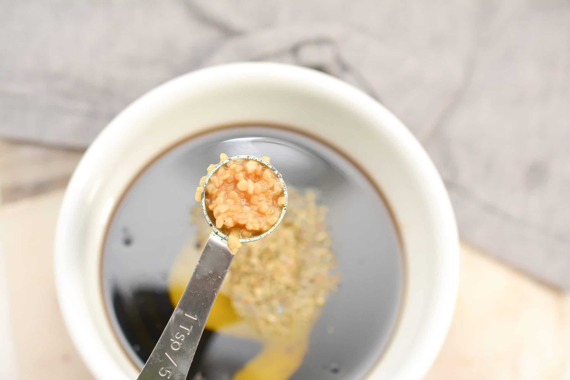 • In a smaller bowl, whisk together the ingredients for the dressing.