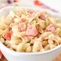 You’ll want to gobble up every piece of elbow macaroni. So, try serving this pasta salad in bowls to allow ultimate scooping.
